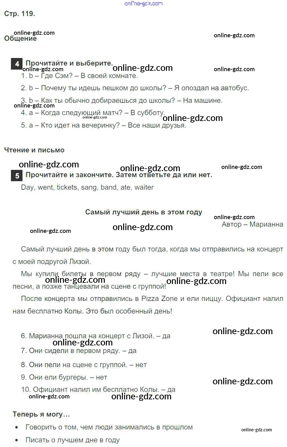 Готовые домашние задания по Английскому языку за 4 класс Учебник Быкова, Дули Spotlight 2015 - Модуль 7. Days To Remember! страница 119