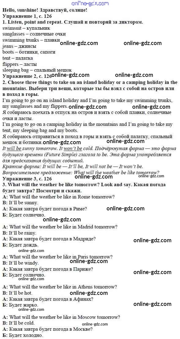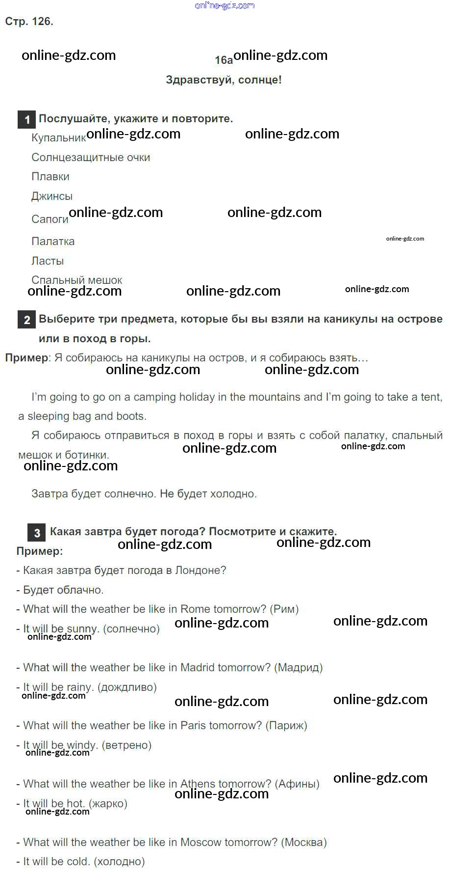 Готовые домашние задания по Английскому языку за 4 класс Учебник Быкова, Дули Spotlight 2015 - Модуль 8. Places To Go! страница 126
