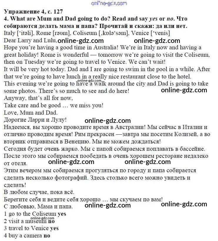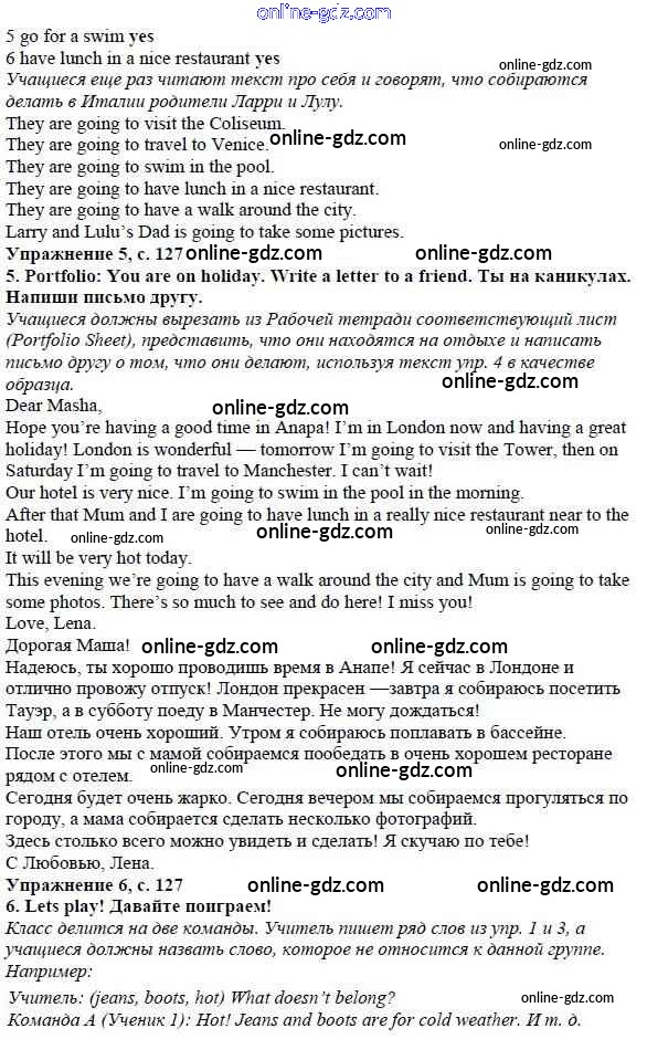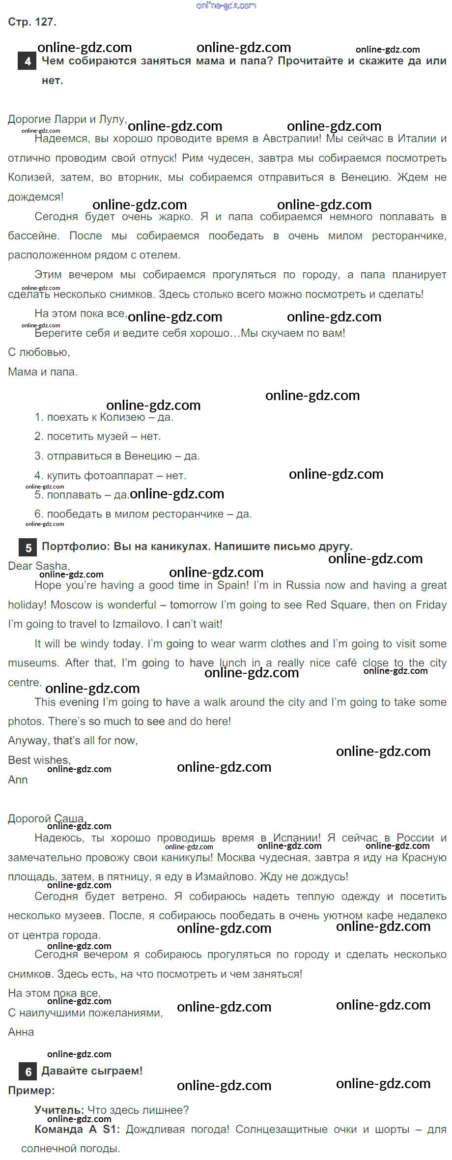 Готовые домашние задания по Английскому языку за 4 класс Учебник Быкова, Дули Spotlight 2015 - Модуль 8. Places To Go! страница 127
