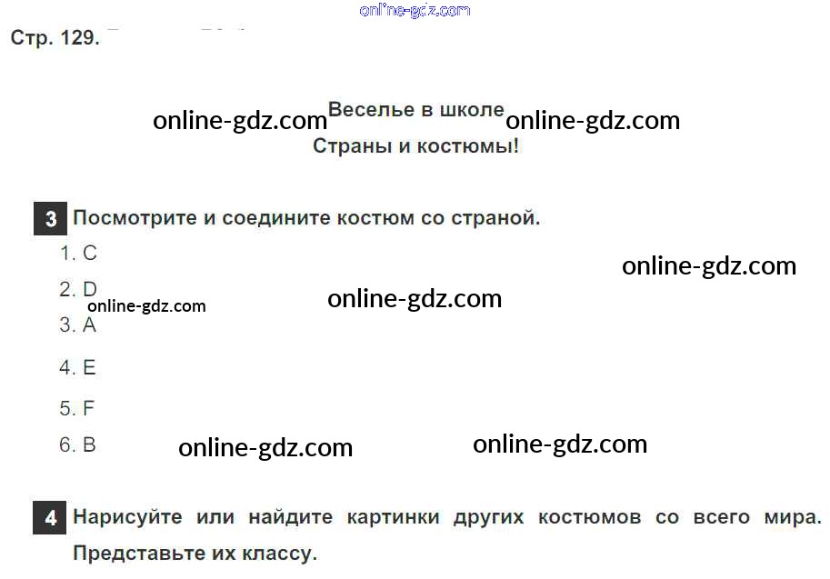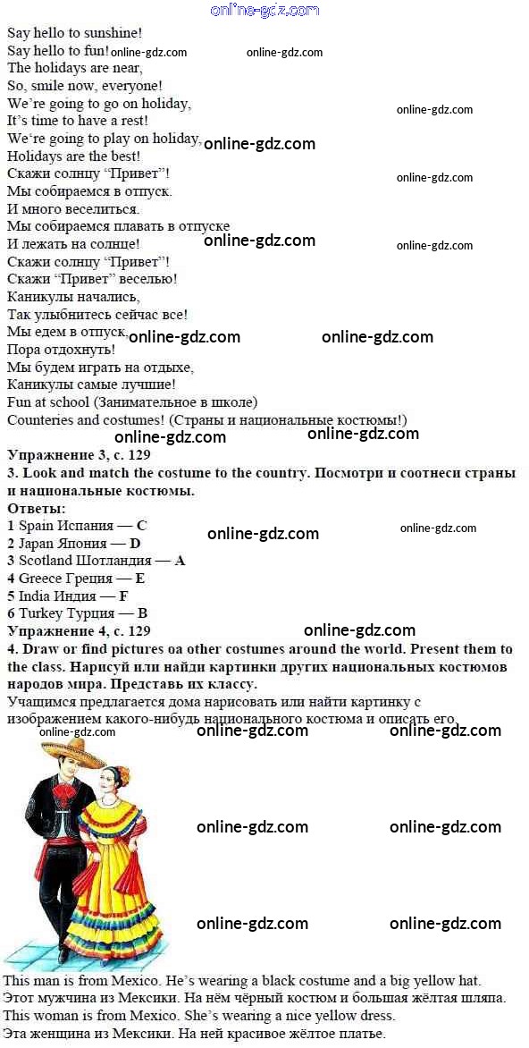 Готовые домашние задания по Английскому языку за 4 класс Учебник Быкова, Дули Spotlight 2015 - Модуль 8. Places To Go! страница 129