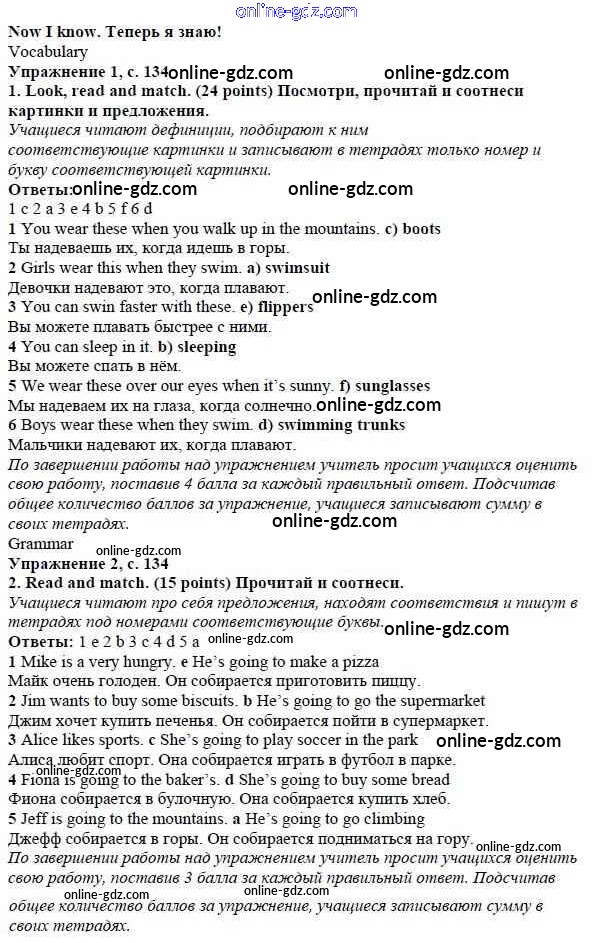 Готовые домашние задания по Английскому языку за 4 класс Учебник Быкова, Дули Spotlight 2015 - Модуль 8. Places To Go! страница 134