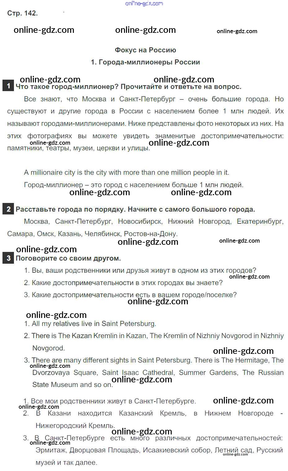 Готовые домашние задания по Английскому языку за 4 класс Учебник Быкова, Дули Spotlight 2015 - Модуль 8. Places To Go! страница 142