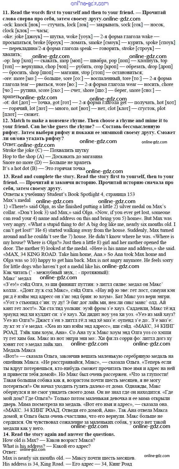 Готовые домашние задания по Английскому языку за 4 класс Учебник Быкова, Дули Spotlight 2015 - Модуль 8. Places To Go! страница 153