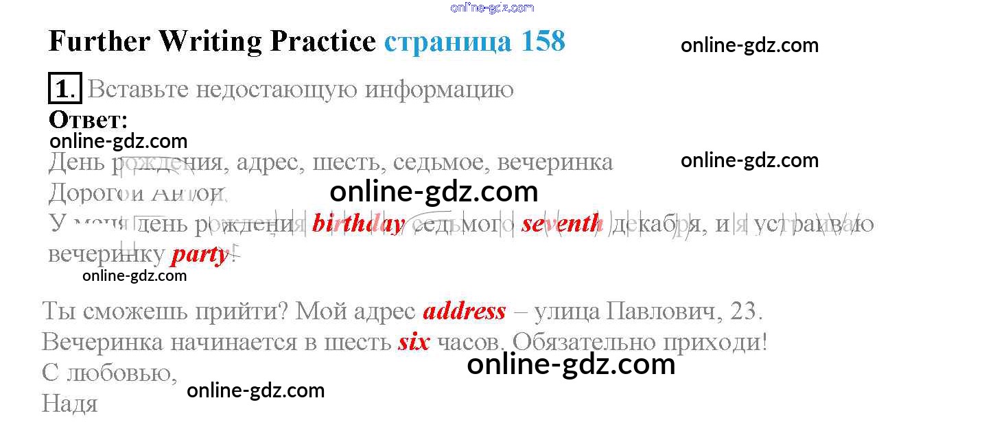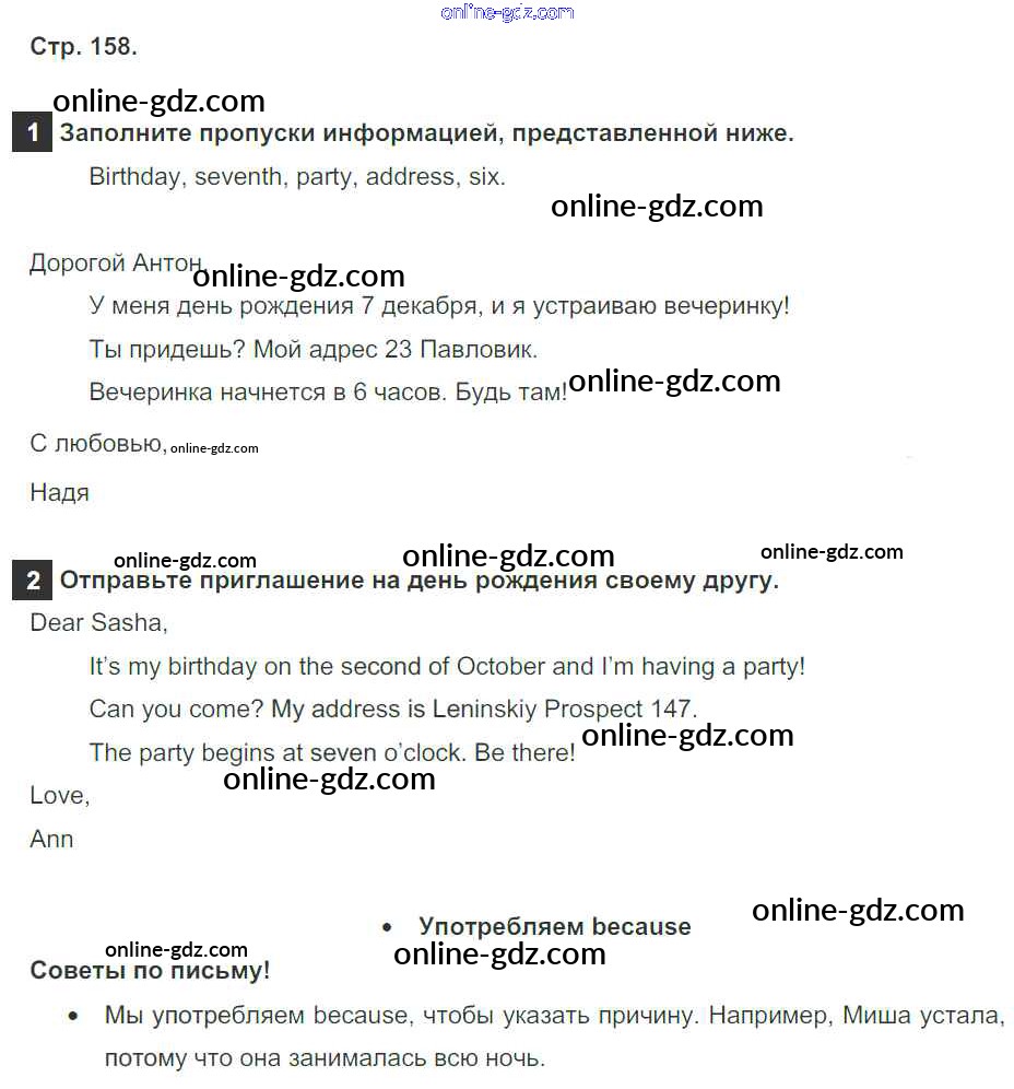 Готовые домашние задания по Английскому языку за 4 класс Учебник Быкова, Дули Spotlight 2015 - Модуль 8. Places To Go! страница 158