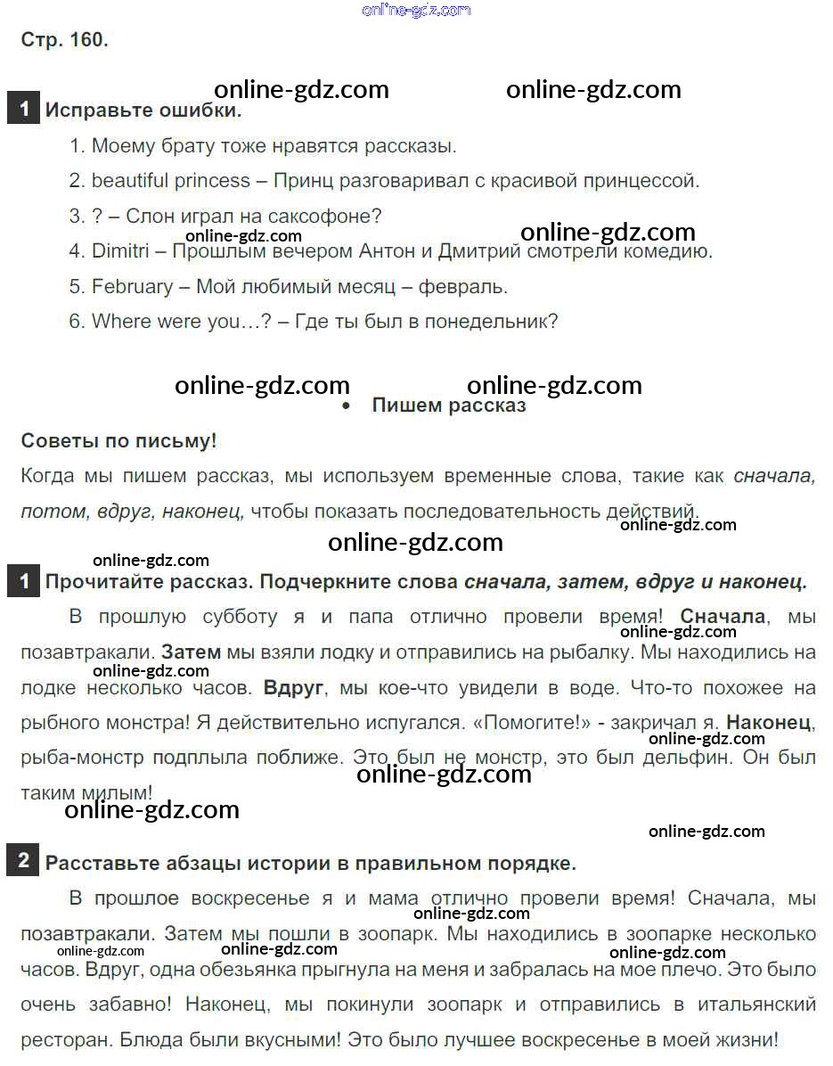 Готовые домашние задания по Английскому языку за 4 класс Учебник Быкова, Дули Spotlight 2015 - Модуль 8. Places To Go! страница 160