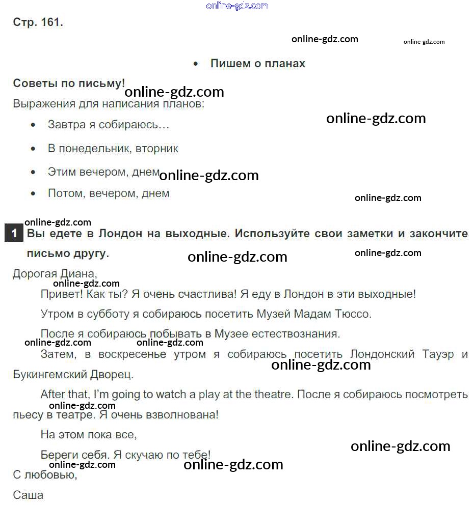 Готовые домашние задания по Английскому языку за 4 класс Учебник Быкова, Дули Spotlight 2015 - Модуль 8. Places To Go! страница 161