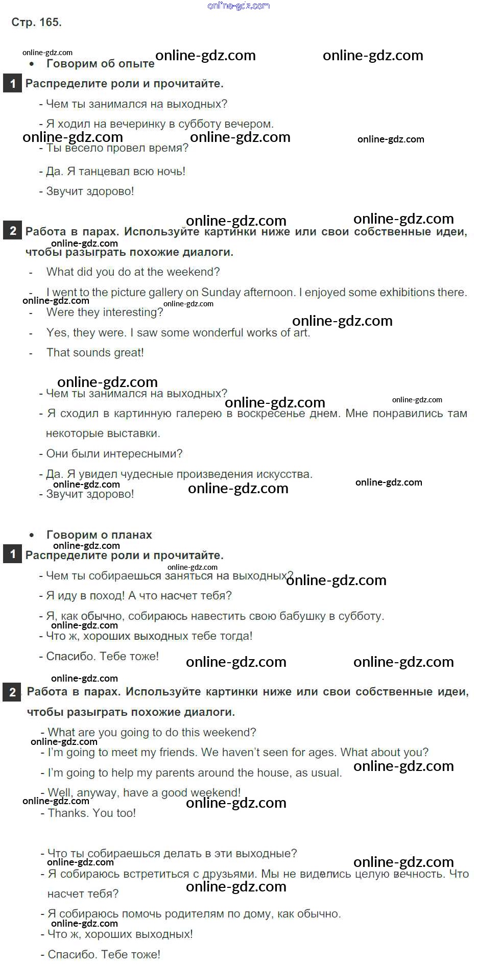 Готовые домашние задания по Английскому языку за 4 класс Учебник Быкова, Дули Spotlight 2015 - Модуль 8. Places To Go! страница 165