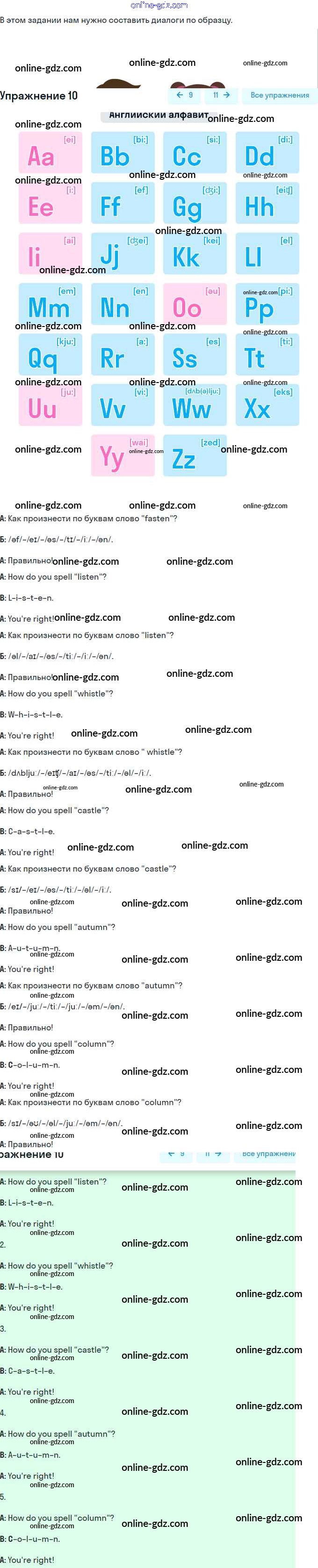 Готовые домашние задания по Английскому языку за 4 класс Учебник Комарова, Ларионова Brilliant 2020 - Раздел 1. Фонетический курс 10