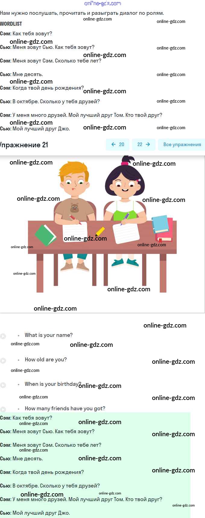 Готовые домашние задания по Английскому языку за 4 класс Учебник Комарова, Ларионова Brilliant 2020 - Раздел 1. Фонетический курс 21