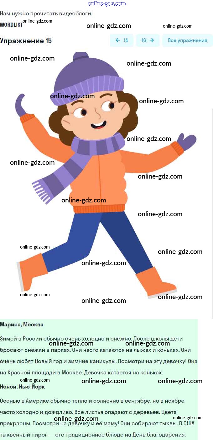 Готовые домашние задания по Английскому языку за 4 класс Учебник Комарова, Ларионова Brilliant 2020 - Раздел 7. Погода 15