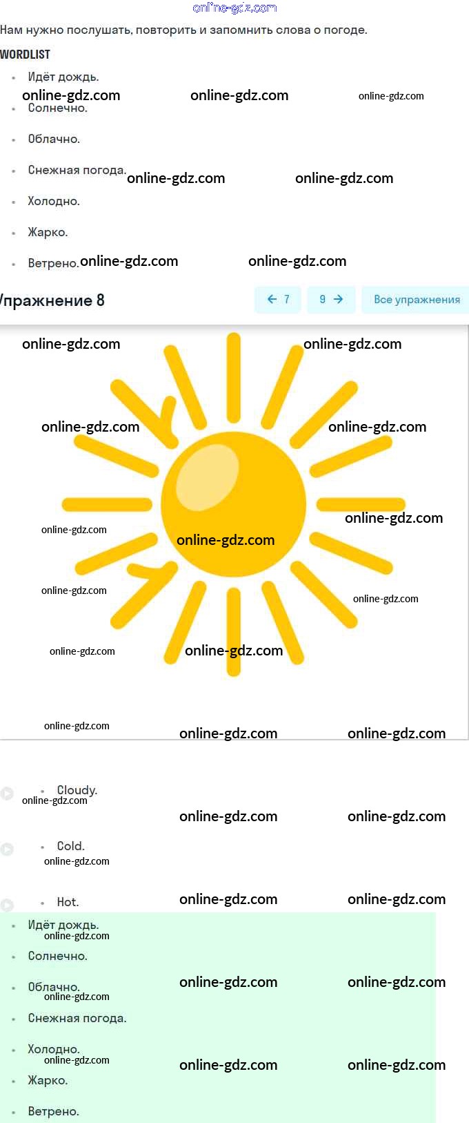 Готовые домашние задания по Английскому языку за 4 класс Учебник Комарова, Ларионова Brilliant 2020 - Раздел 7. Погода 8