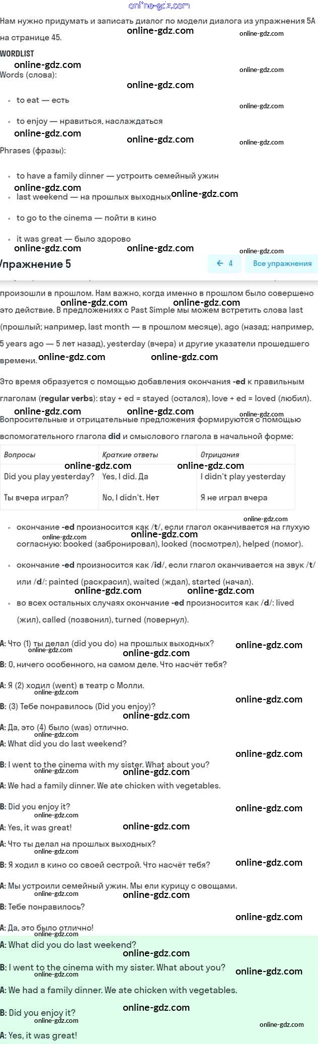 Готовые домашние задания по Английскому языку за 5 класс Рабочая тетрадь Баранова, Дули Starlight Углубленный уровень 2017 - Страницы 45