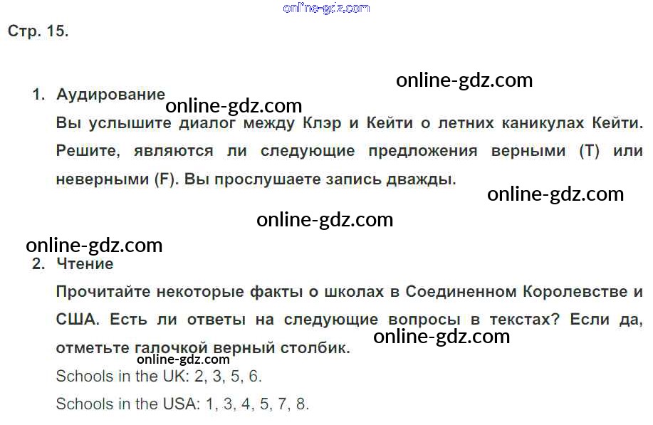 Готовые домашние задания по Английскому языку за 5 класс Рабочая тетрадь Кузовлев, Лапа Академический школьный учебник 2013 - Unit 1. Let's make friends! стр. 15