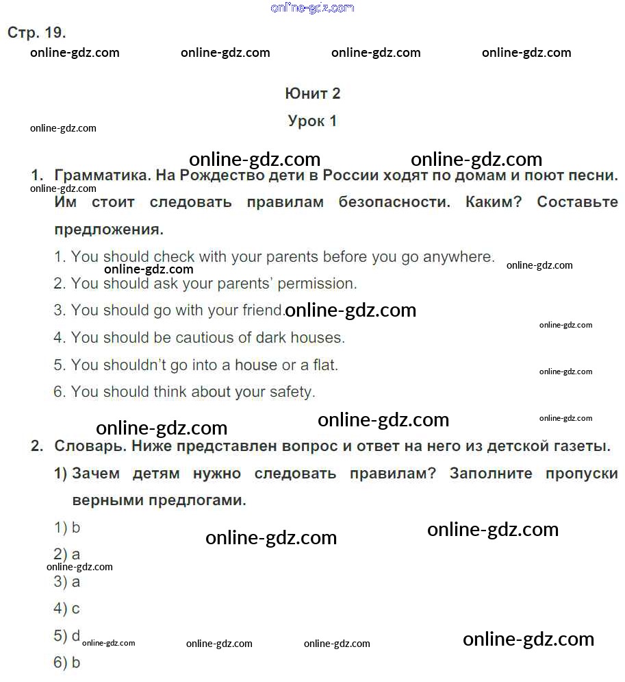 Готовые домашние задания по Английскому языку за 5 класс Рабочая тетрадь Кузовлев, Лапа Академический школьный учебник 2013 - Unit 2. Rules around us стр. 19