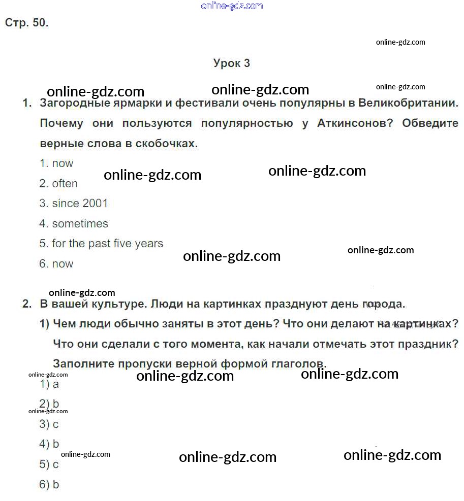 Готовые домашние задания по Английскому языку за 5 класс Рабочая тетрадь Кузовлев, Лапа Академический школьный учебник 2013 - Unit 4. Every day and at weekends стр. 50