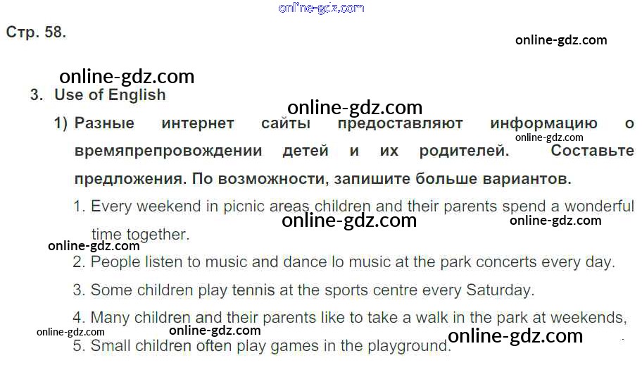 Готовые домашние задания по Английскому языку за 5 класс Рабочая тетрадь Кузовлев, Лапа Академический школьный учебник 2013 - Unit 4. Every day and at weekends стр. 58