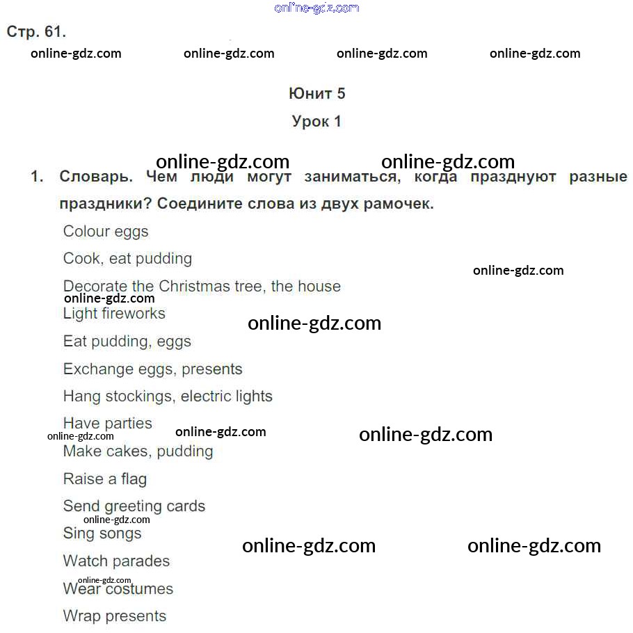 Готовые домашние задания по Английскому языку за 5 класс Рабочая тетрадь Кузовлев, Лапа Академический школьный учебник 2013 - Unit 5. My favorite celebrations стр. 61