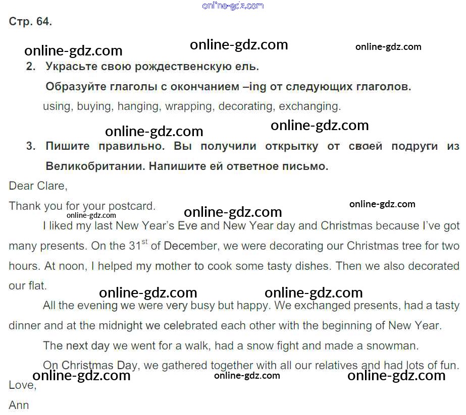 Готовые домашние задания по Английскому языку за 5 класс Рабочая тетрадь Кузовлев, Лапа Академический школьный учебник 2013 - Unit 5. My favorite celebrations стр. 64