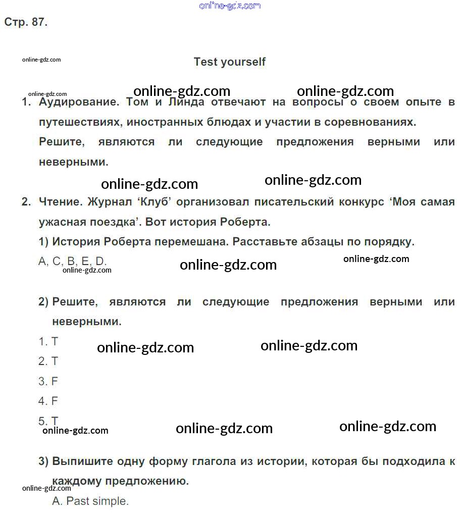 Готовые домашние задания по Английскому языку за 5 класс Рабочая тетрадь Кузовлев, Лапа Академический школьный учебник 2013 - Unit 6. We've had a nice trip to England стр. 87