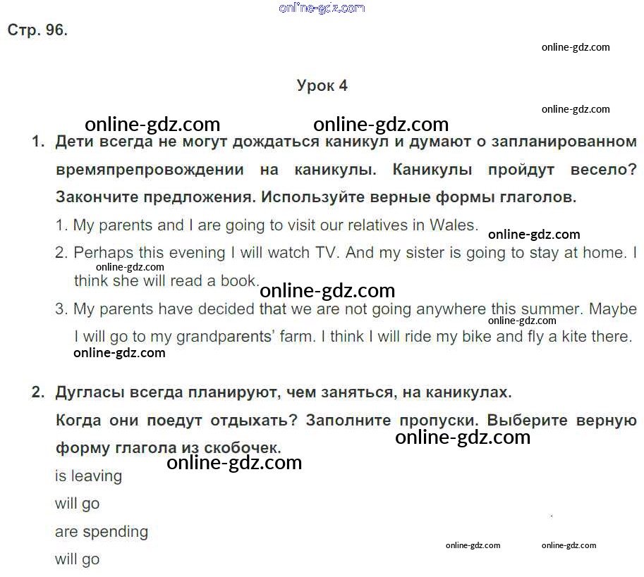 Готовые домашние задания по Английскому языку за 5 класс Рабочая тетрадь Кузовлев, Лапа Академический школьный учебник 2013 - Unit 7. My future holiday стр. 96