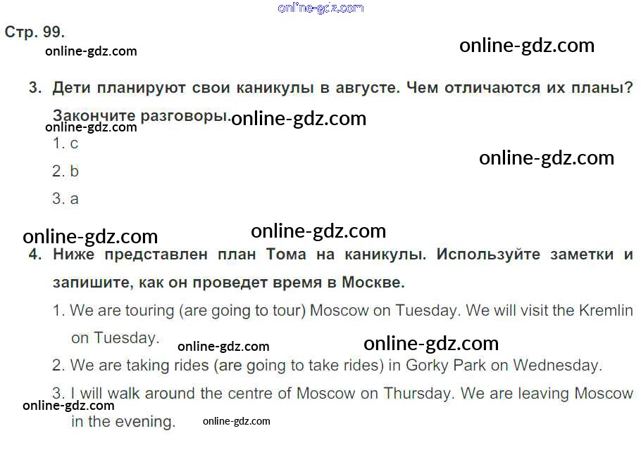 Готовые домашние задания по Английскому языку за 5 класс Рабочая тетрадь Кузовлев, Лапа Академический школьный учебник 2013 - Unit 7. My future holiday стр. 99