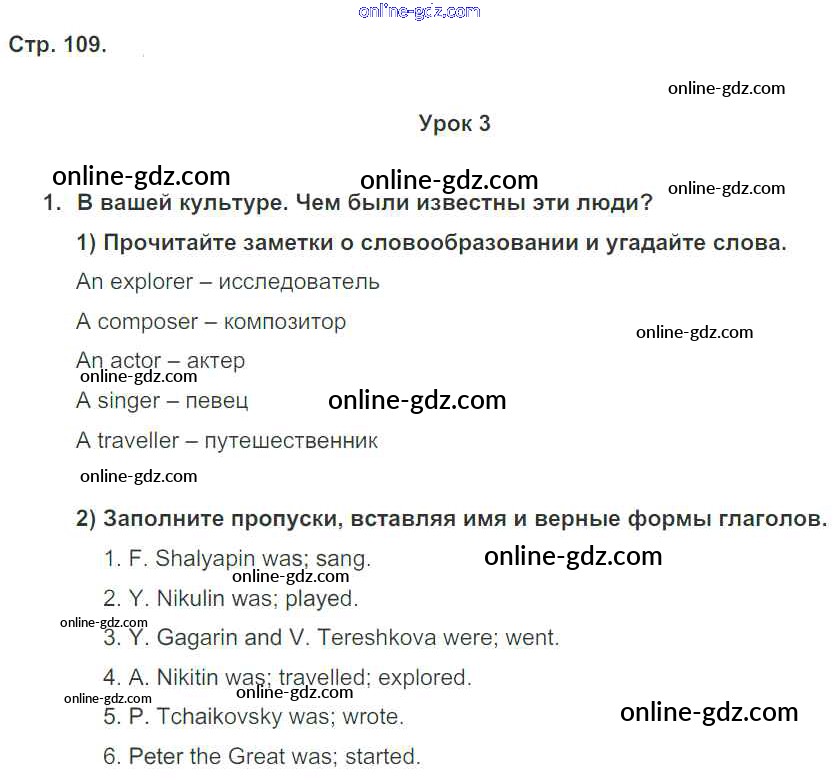 Готовые домашние задания по Английскому языку за 5 класс Рабочая тетрадь Кузовлев, Лапа Академический школьный учебник 2013 - Unit 8. My best impressions стр. 109