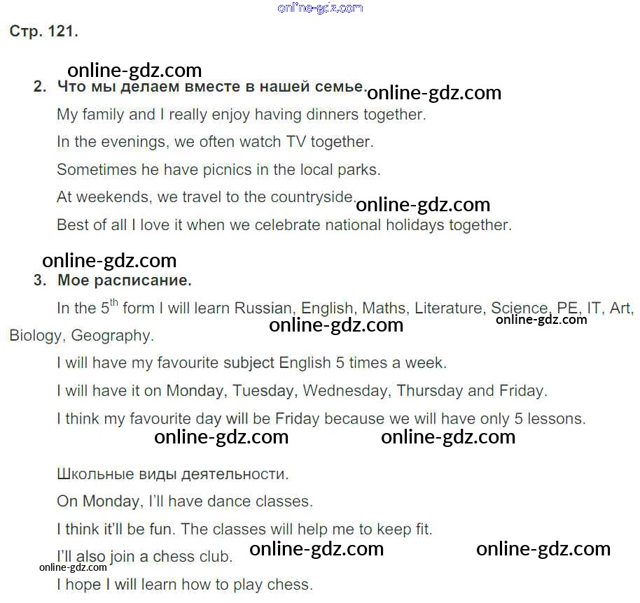 Готовые домашние задания по Английскому языку за 5 класс Рабочая тетрадь Кузовлев, Лапа Академический школьный учебник 2013 - Unit 8. My best impressions стр. 121