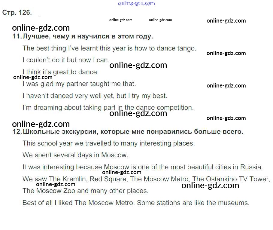 Готовые домашние задания по Английскому языку за 5 класс Рабочая тетрадь Кузовлев, Лапа Академический школьный учебник 2013 - Unit 8. My best impressions стр. 126