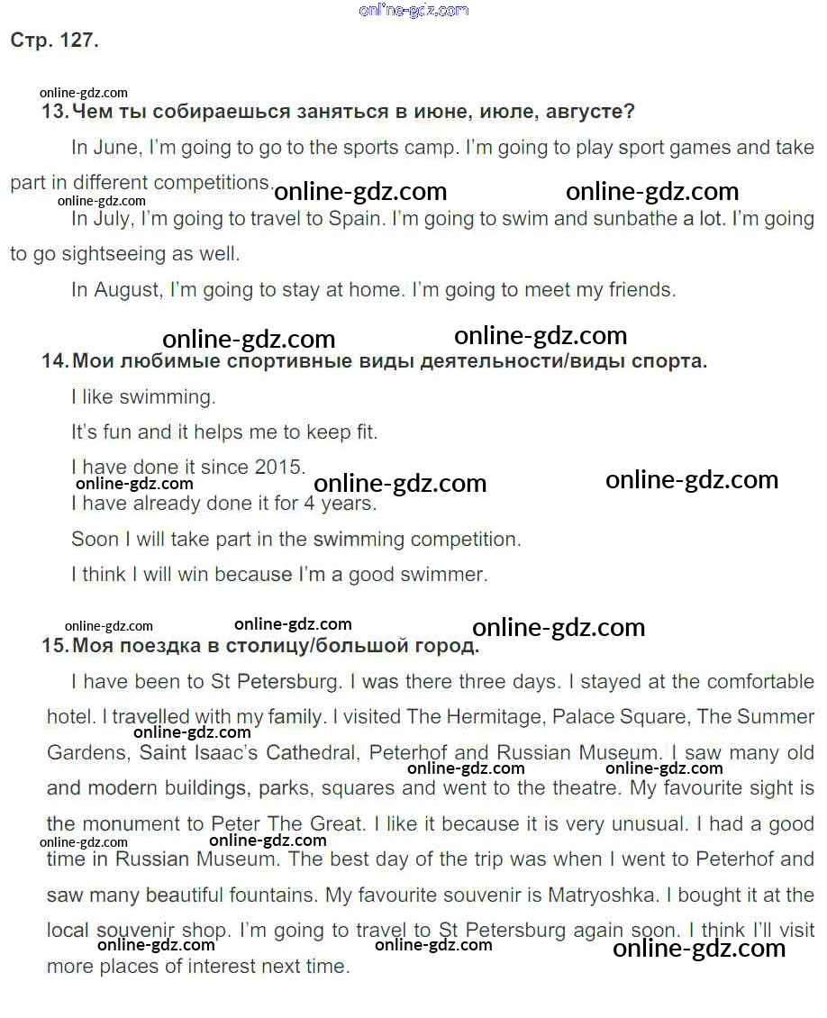 Готовые домашние задания по Английскому языку за 5 класс Рабочая тетрадь Кузовлев, Лапа Академический школьный учебник 2013 - Unit 8. My best impressions стр. 127