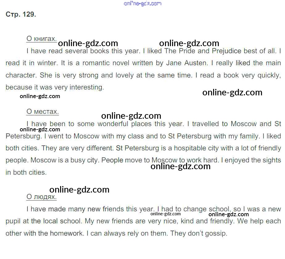 Готовые домашние задания по Английскому языку за 5 класс Рабочая тетрадь Кузовлев, Лапа Академический школьный учебник 2013 - Unit 8. My best impressions стр. 129