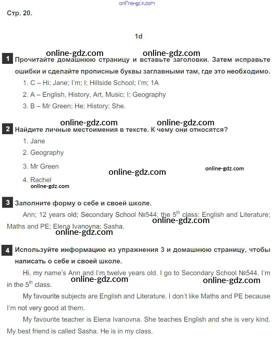 Готовые домашние задания по Английскому языку за 5 класс Рабочая тетрадь Ваулина, Дули Spotlight 2016 - Страницы 20
