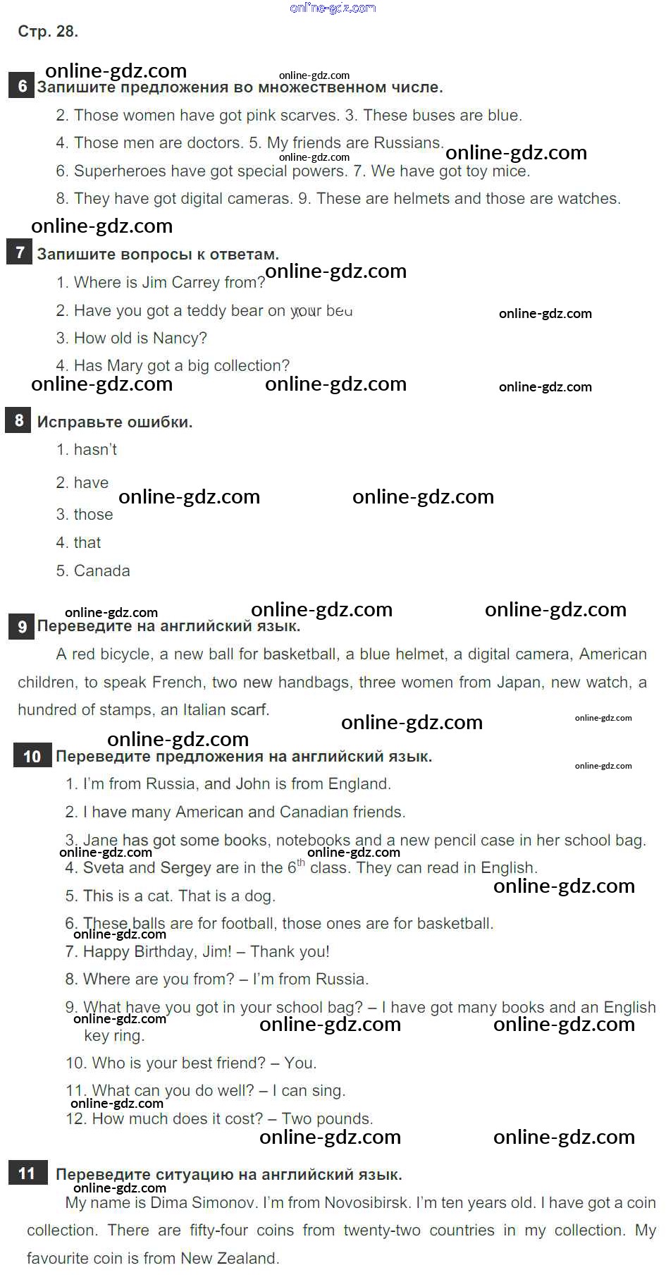Готовые домашние задания по Английскому языку за 5 класс Рабочая тетрадь Ваулина, Дули Spotlight 2016 - Страницы 28