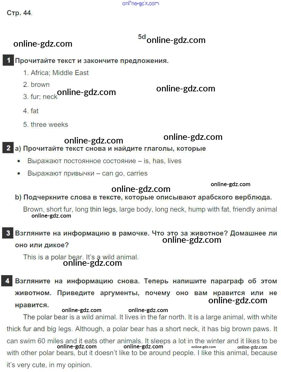 Готовые домашние задания по Английскому языку за 5 класс Рабочая тетрадь Ваулина, Дули Spotlight 2016 - Страницы 44