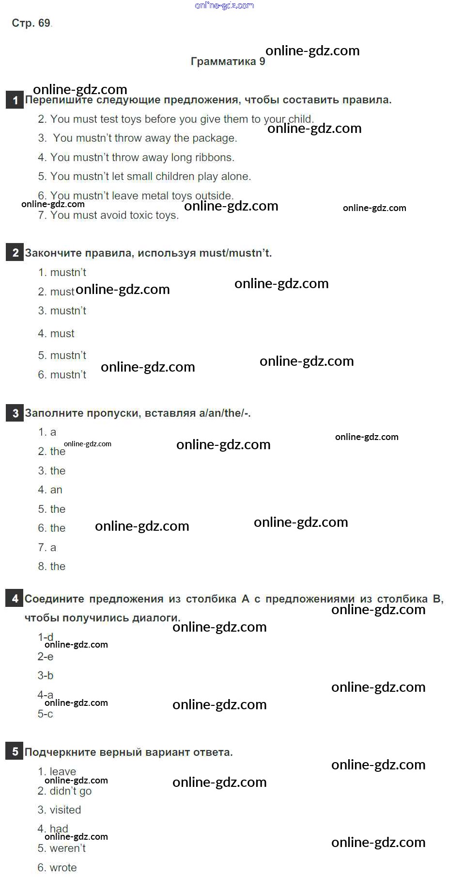 Готовые домашние задания по Английскому языку за 5 класс Рабочая тетрадь Ваулина, Дули Spotlight 2016 - Страницы 69