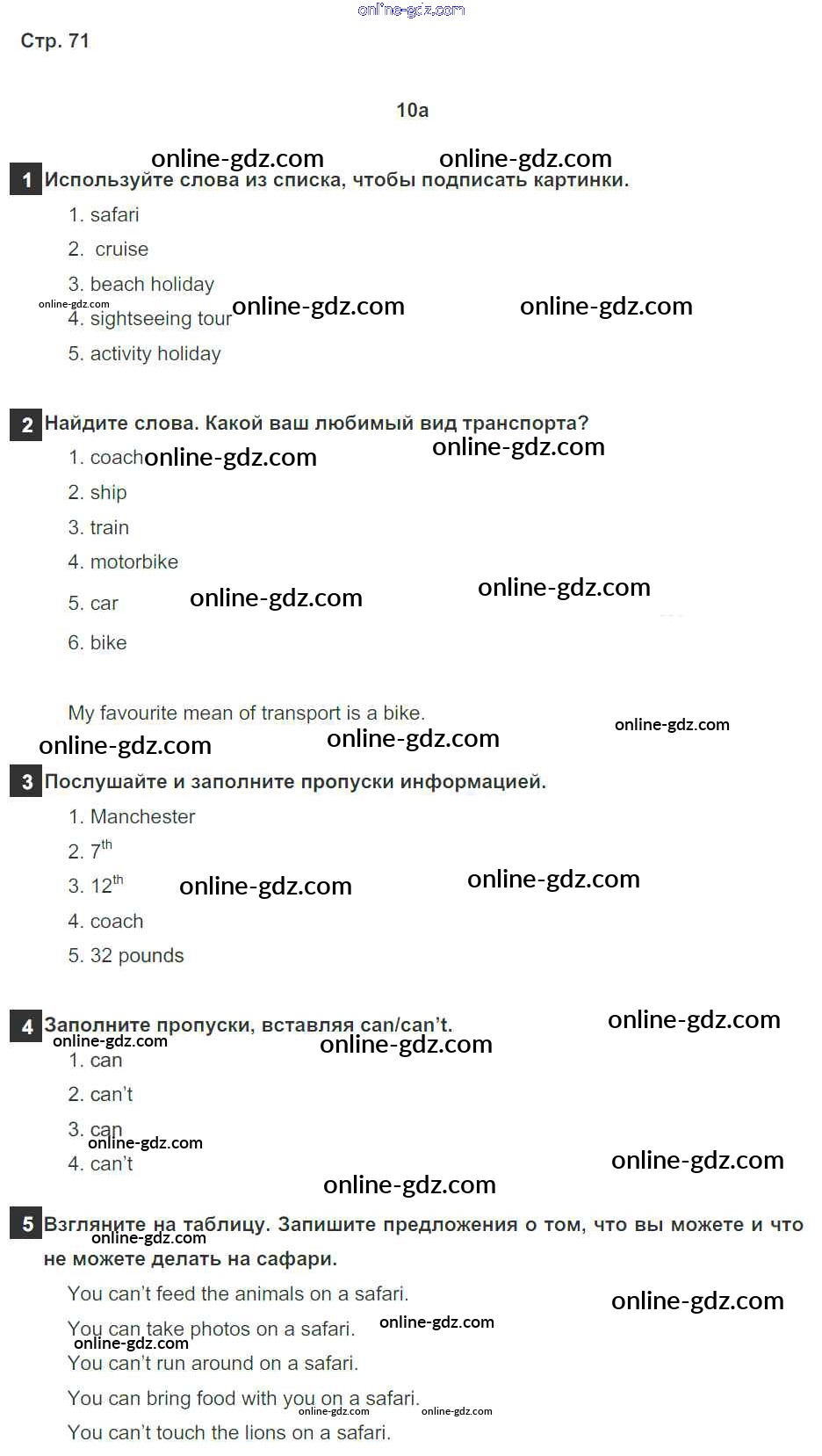 Готовые домашние задания по Английскому языку за 5 класс Рабочая тетрадь Ваулина, Дули Spotlight 2016 - Страницы 71