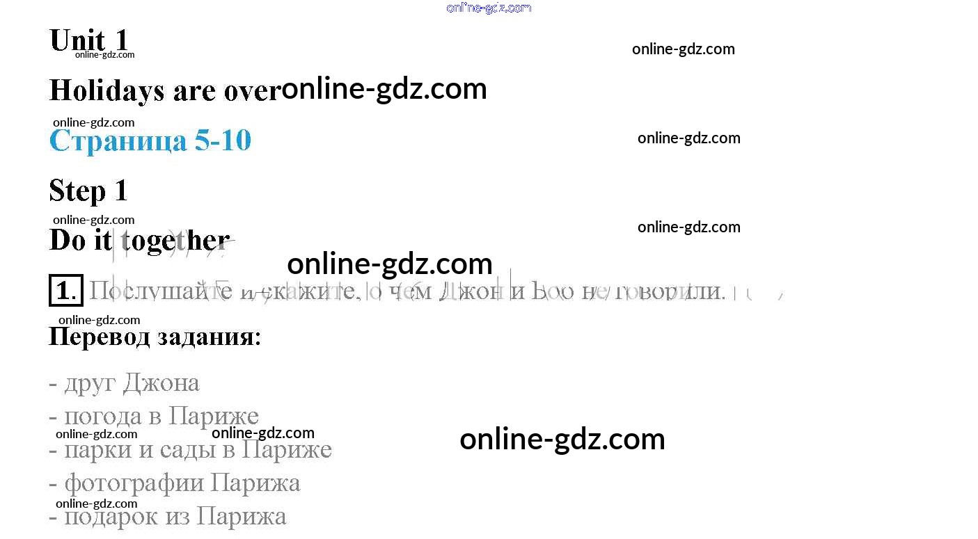 Готовые домашние задания по Английскому языку за 5 класс Учебник Афанасьева, Михеева Rainbow 2017 - Step 1 Unit 1. Holidays Are Over 1