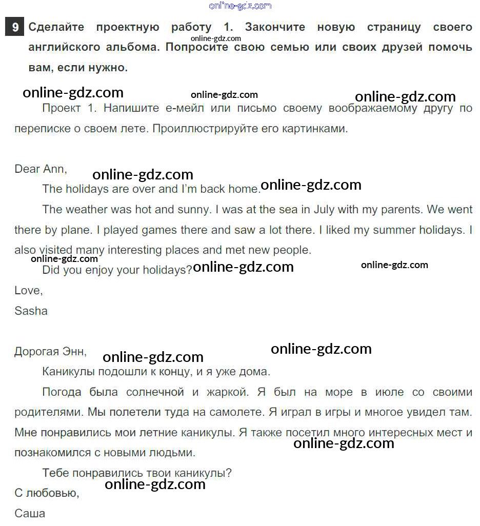 Готовые домашние задания по Английскому языку за 5 класс Учебник Афанасьева, Михеева Rainbow 2017 - Step 10. Enjoy Yourself Unit 1. Holidays Are Over 9