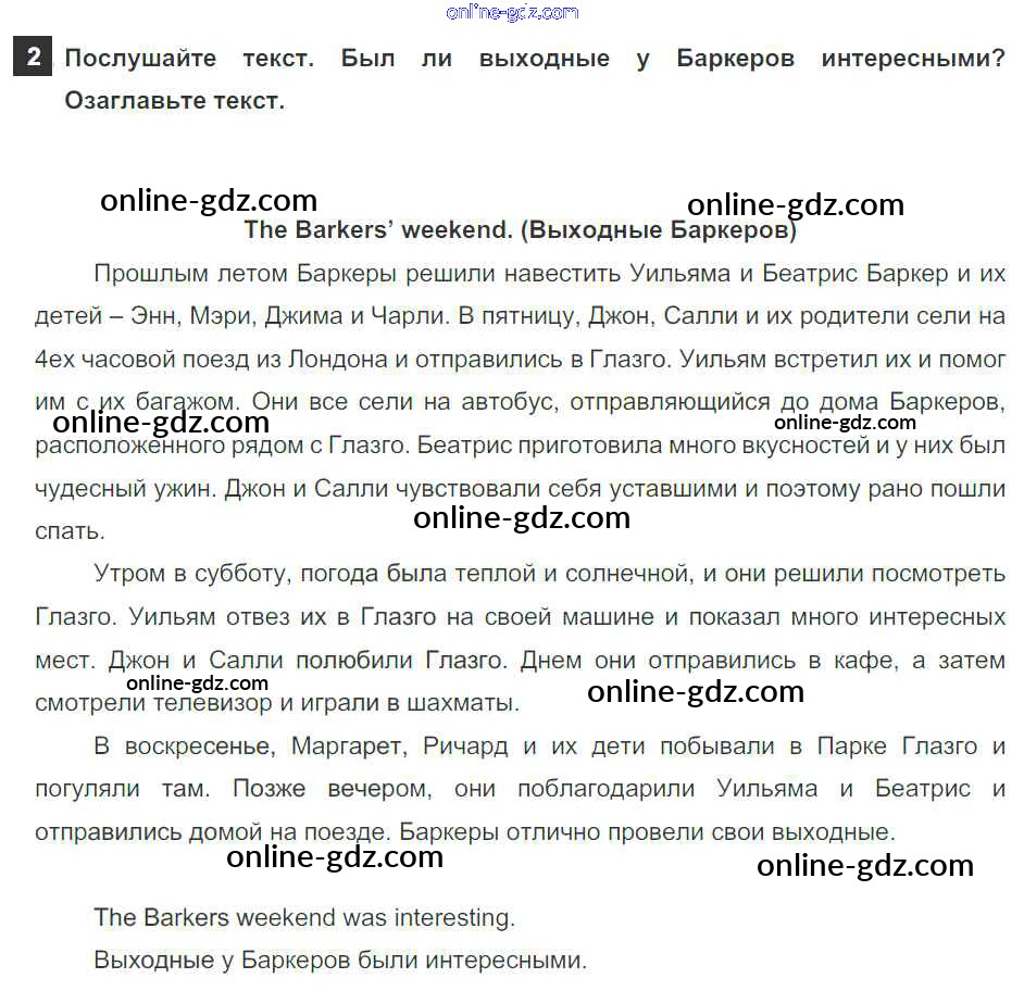Готовые домашние задания по Английскому языку за 5 класс Учебник Афанасьева, Михеева Rainbow 2017 - Step 3 Unit 1. Holidays Are Over 2