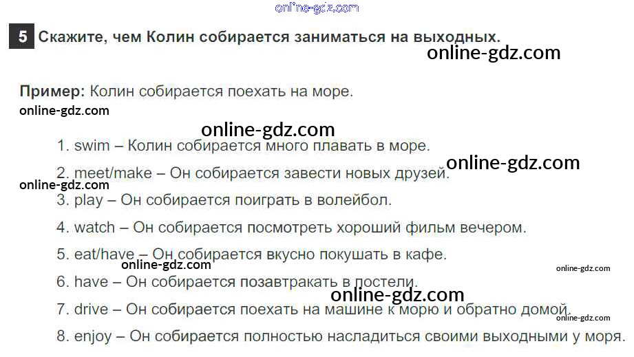 Готовые домашние задания по Английскому языку за 5 класс Учебник Афанасьева, Михеева Rainbow 2017 - Step 3 Unit 1. Holidays Are Over 5