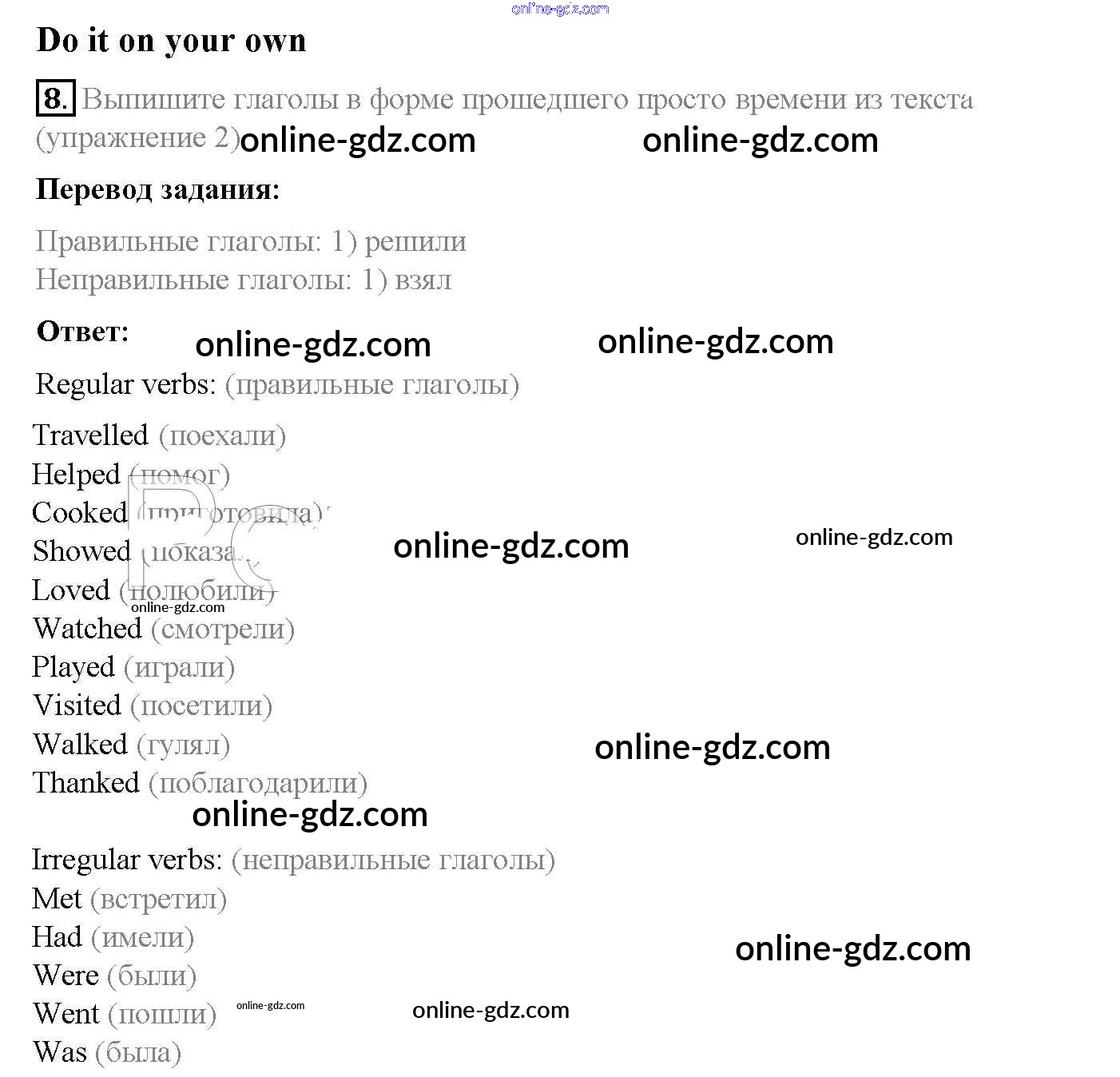 Готовые домашние задания по Английскому языку за 5 класс Учебник Афанасьева, Михеева Rainbow 2017 - Step 3 Unit 1. Holidays Are Over 8