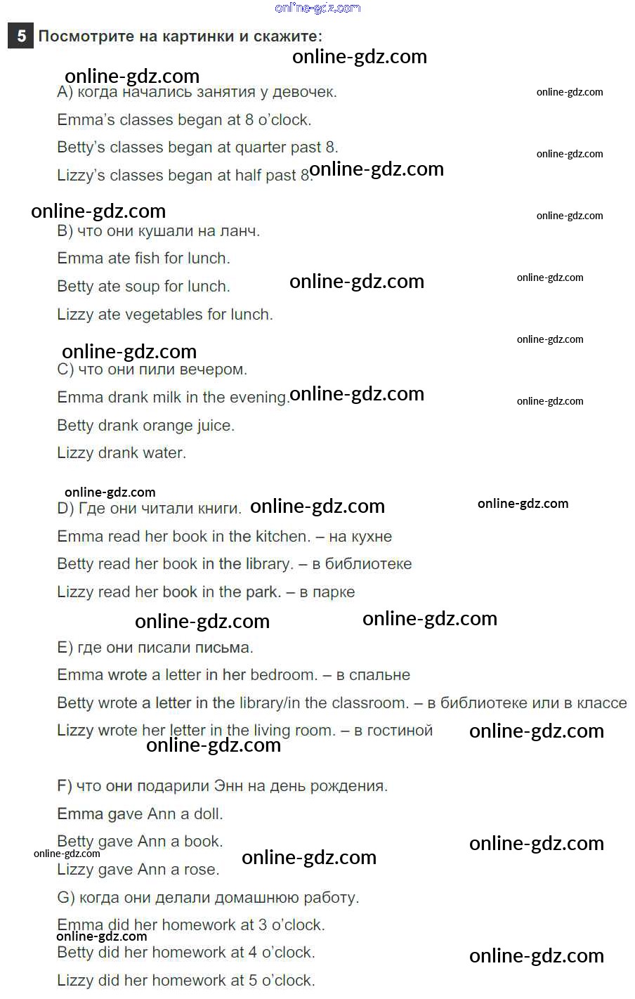Готовые домашние задания по Английскому языку за 5 класс Учебник Афанасьева, Михеева Rainbow 2017 - Step 4 Unit 1. Holidays Are Over 5