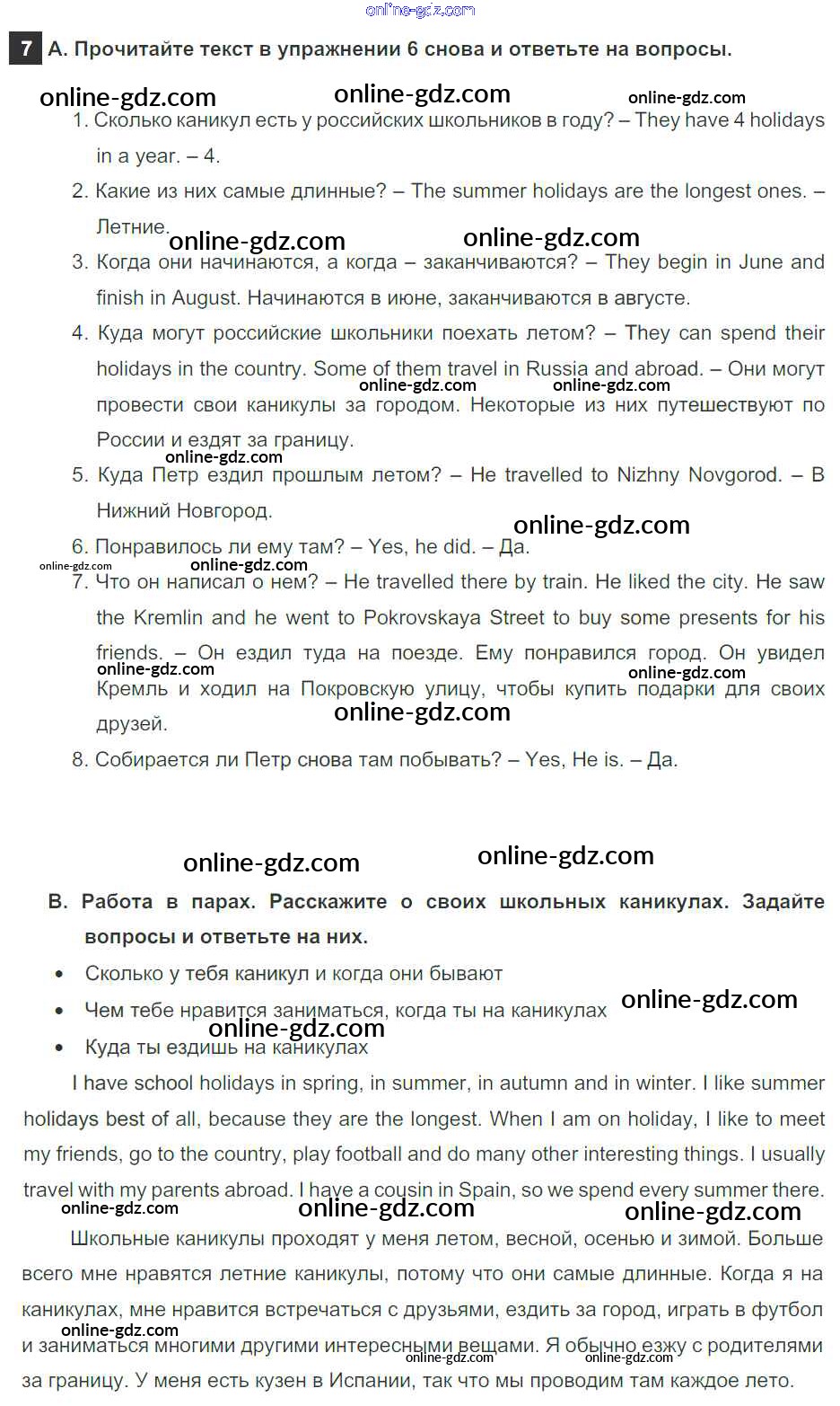 Готовые домашние задания по Английскому языку за 5 класс Учебник Афанасьева, Михеева Rainbow 2017 - Step 7 Unit 1. Holidays Are Over 7