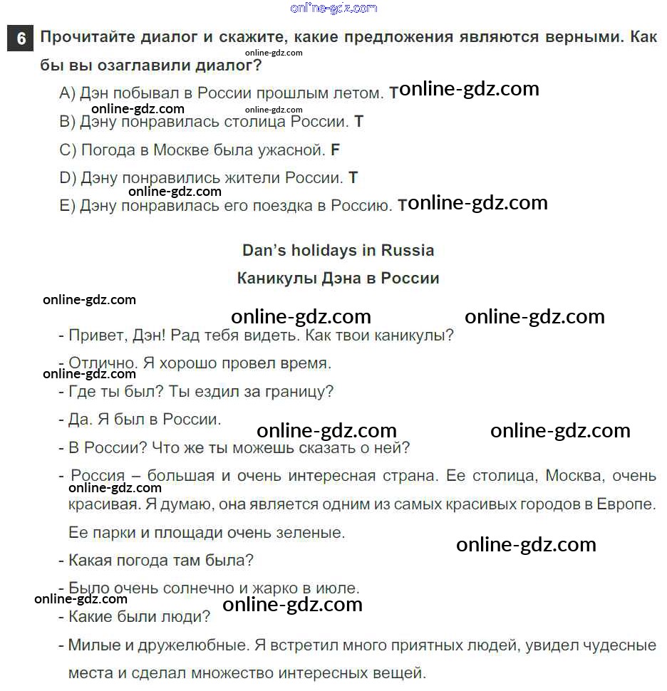 Готовые домашние задания по Английскому языку за 5 класс Учебник Афанасьева, Михеева Rainbow 2017 - Step 8. Round-up Unit 1. Holidays Are Over 6