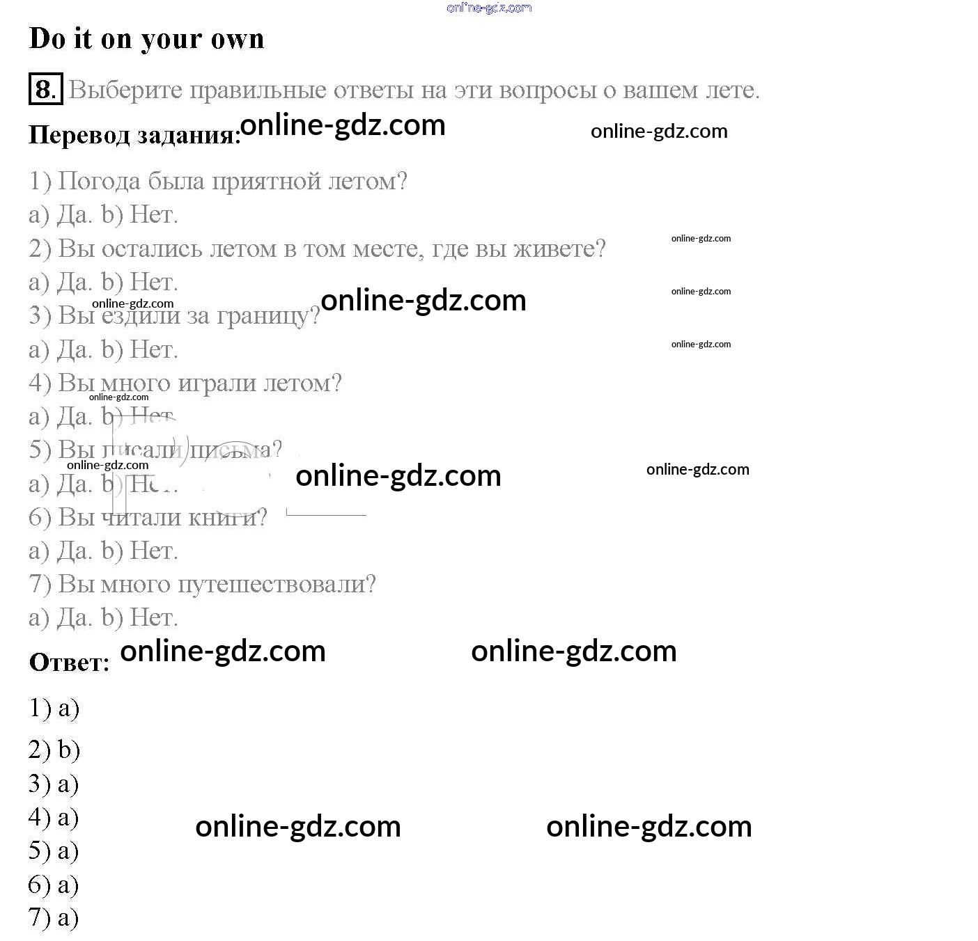 Готовые домашние задания по Английскому языку за 5 класс Учебник Афанасьева, Михеева Rainbow 2017 - Step 8. Round-up Unit 1. Holidays Are Over 8