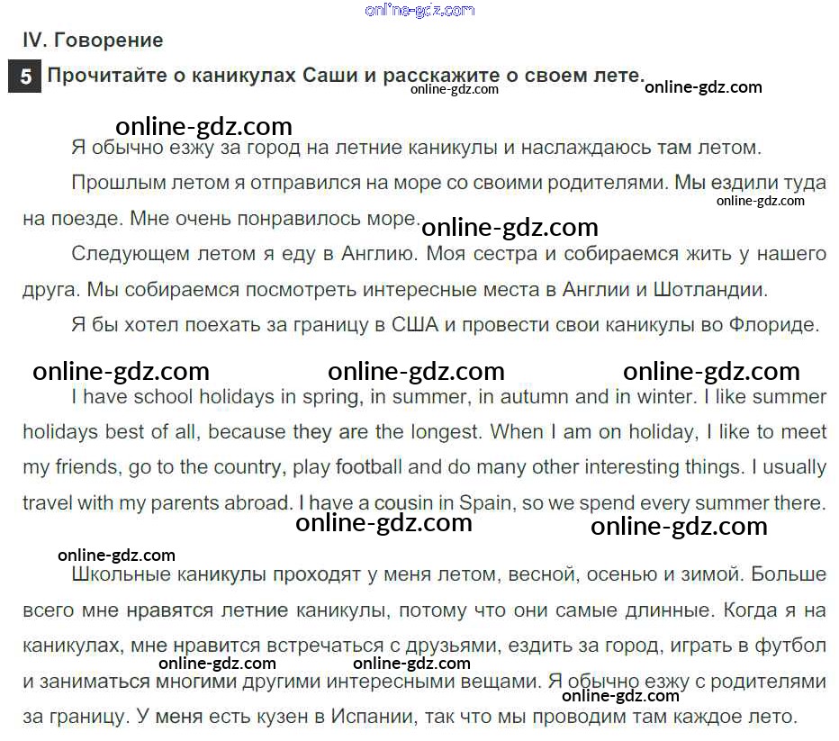 Готовые домашние задания по Английскому языку за 5 класс Учебник Афанасьева, Михеева Rainbow 2017 - Step 9. Test Yourself Unit 1. Holidays Are Over 4