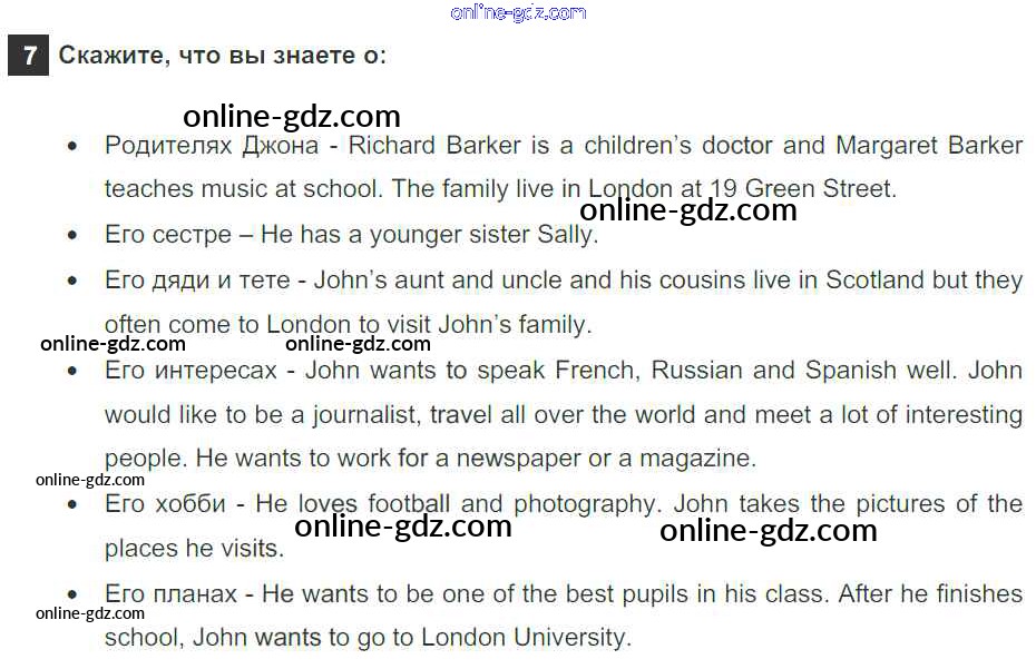 Готовые домашние задания по Английскому языку за 5 класс Учебник Афанасьева, Михеева Rainbow 2017 - Step 2 Unit 2. Family History 7