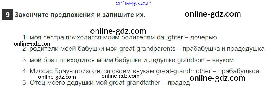 Готовые домашние задания по Английскому языку за 5 класс Учебник Афанасьева, Михеева Rainbow 2017 - Step 4 Unit 2. Family History 9