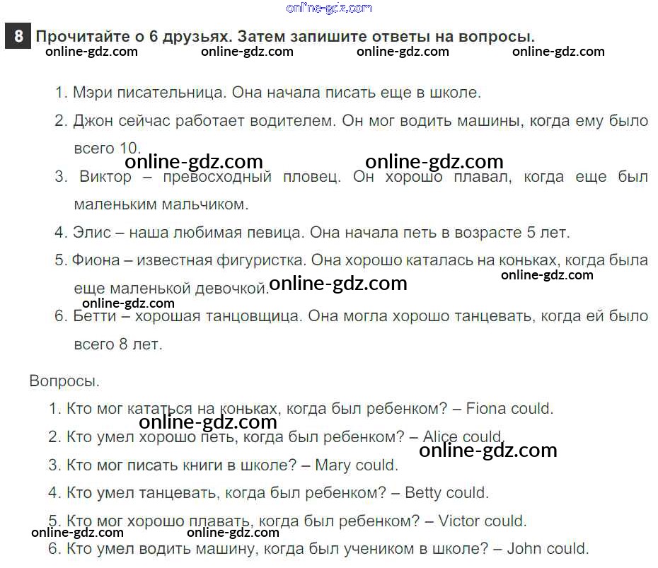 Готовые домашние задания по Английскому языку за 5 класс Учебник Афанасьева, Михеева Rainbow 2017 - Step 5 Unit 2. Family History 8