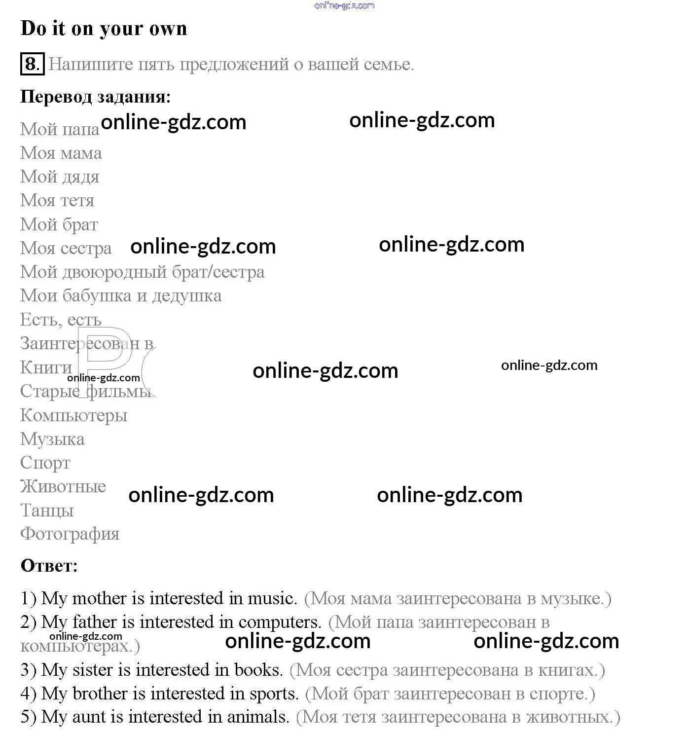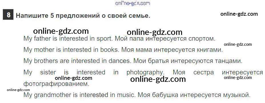 Готовые домашние задания по Английскому языку за 5 класс Учебник Афанасьева, Михеева Rainbow 2017 - Step 6 Unit 2. Family History 8