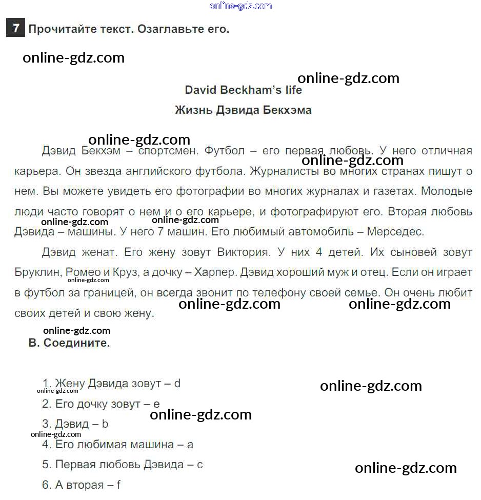 Готовые домашние задания по Английскому языку за 5 класс Учебник Афанасьева, Михеева Rainbow 2017 - Step 7 Unit 2. Family History 7